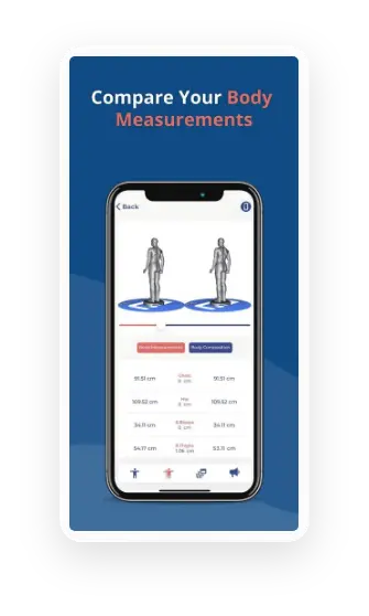 DigiME Wellness extrage repere cheie ale corpului și măsurători din cele 2 fotografii ale unui client (lateral și față). Analizează compoziția corporală și oferă recomandări de sănătate.